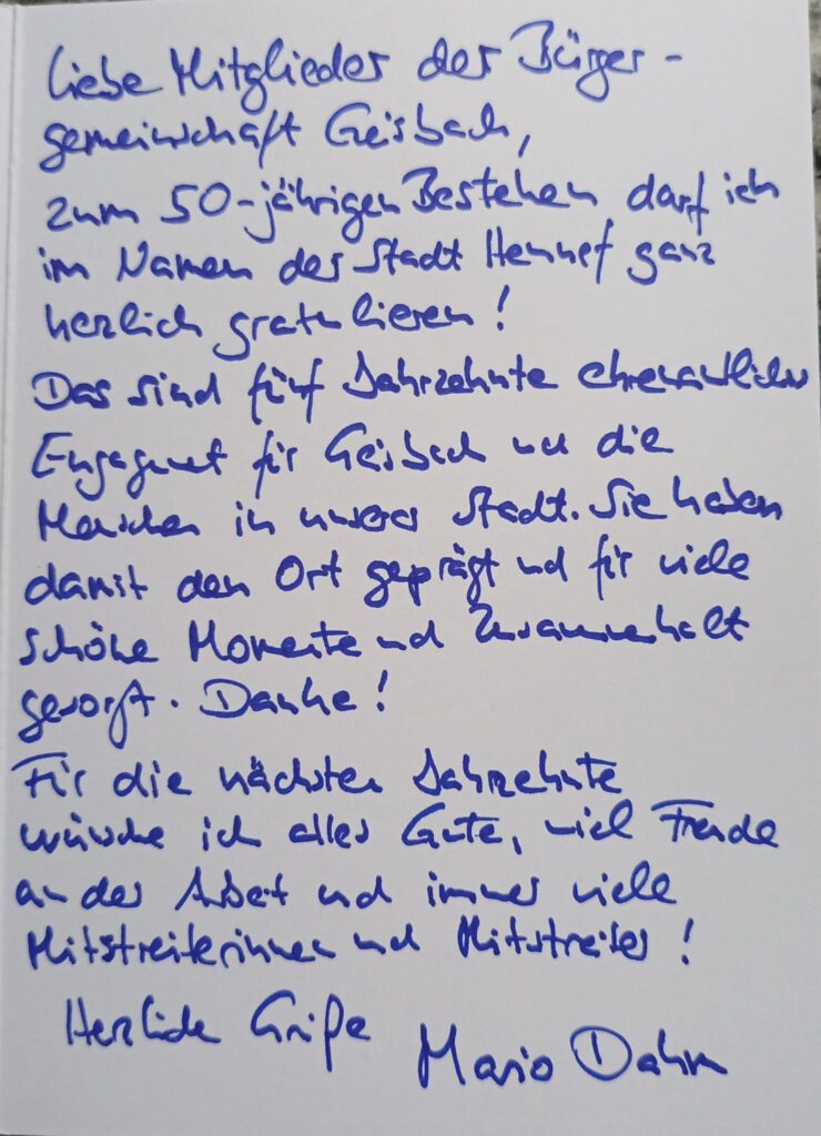 Wir feiern 50 Jahre Bürgergemeinschaft Geisbach e.V.